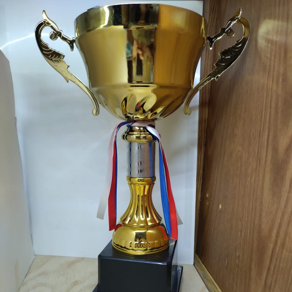 Copón metálico color dorado, en cuerpo plástico con base plástica.