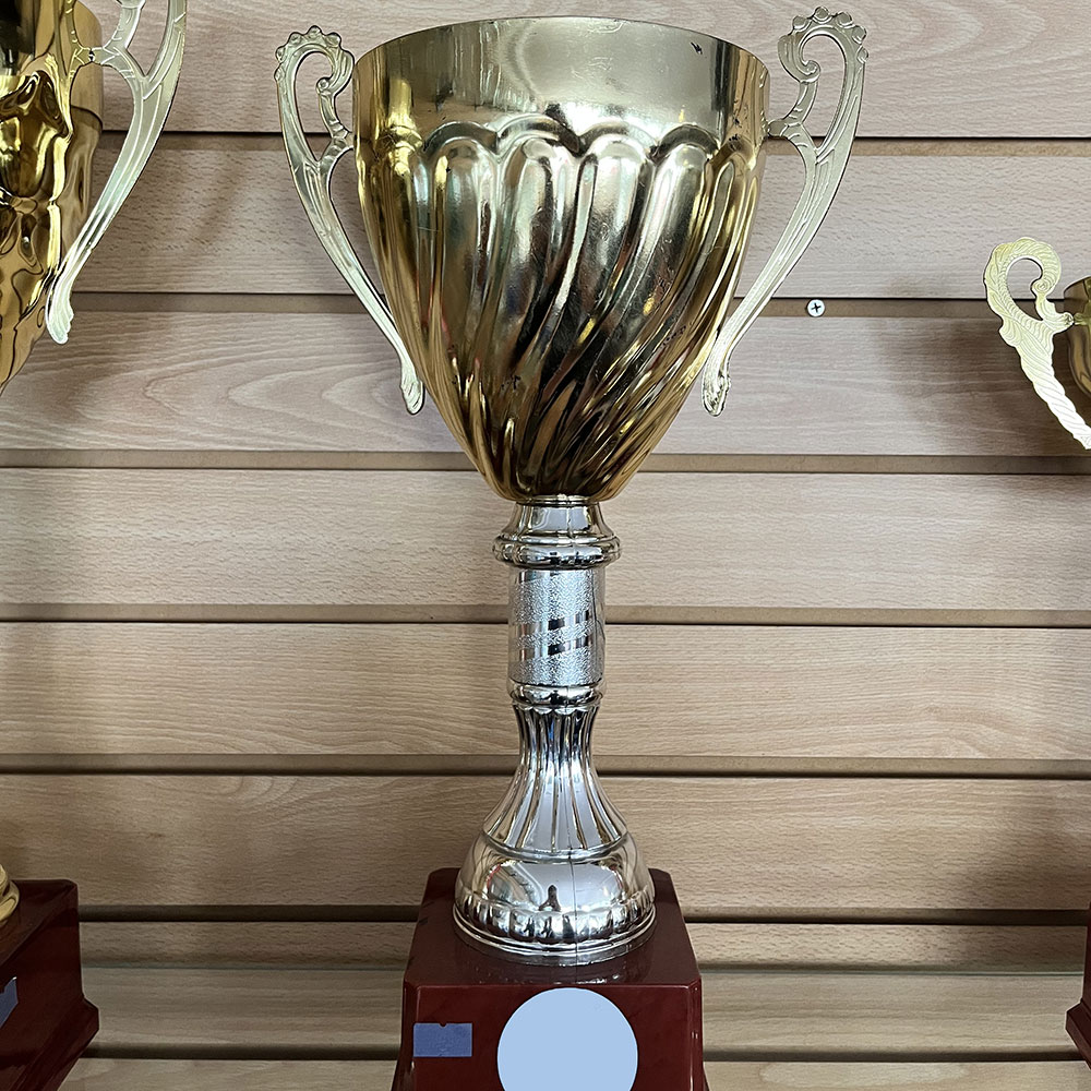 Copón metálico en cuerpo plástico color oro, con base plástica.