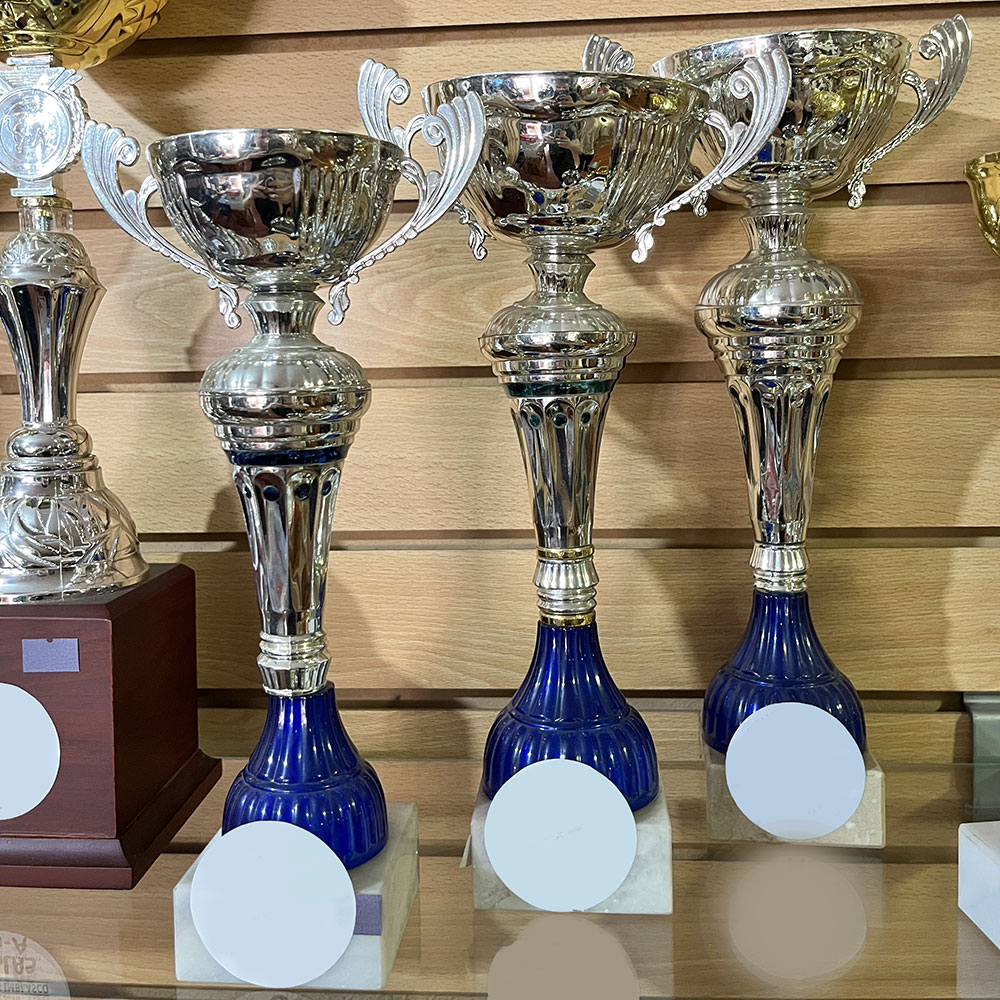 Copón metálico en cuerpo plástico con base de mármol.