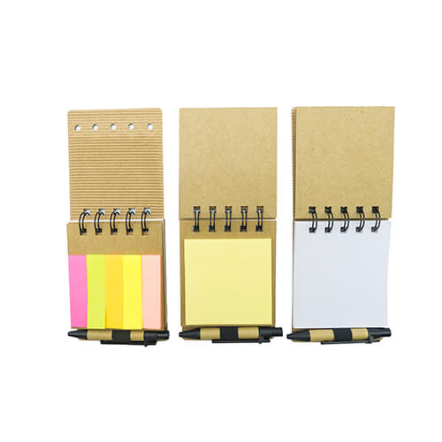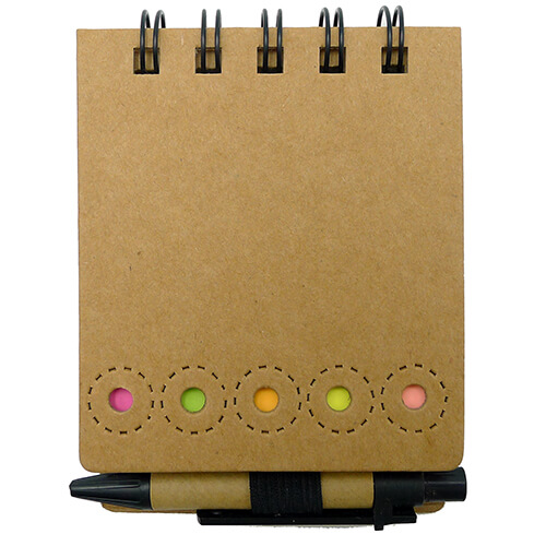 Memo set ecológico de oficina que incluye set de post-it y bolígrafo pequeño ecológico, tinta azul.