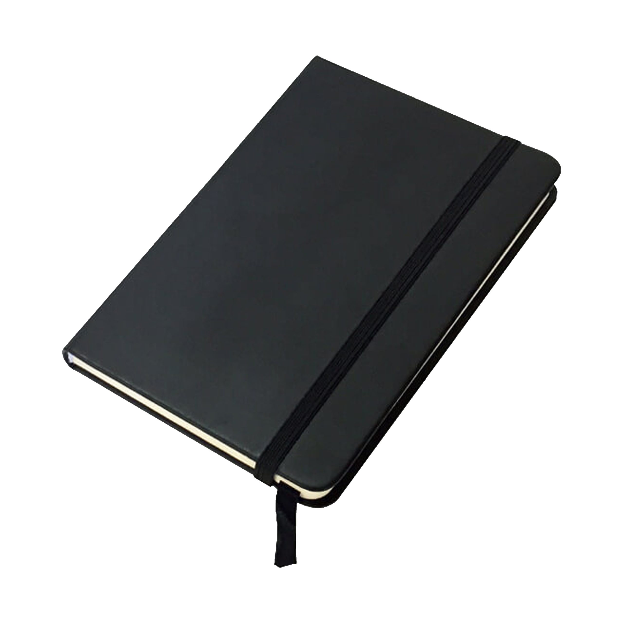 De 80 hojas lisas con elástico de sujeción y marcapáginas de tela a juego.