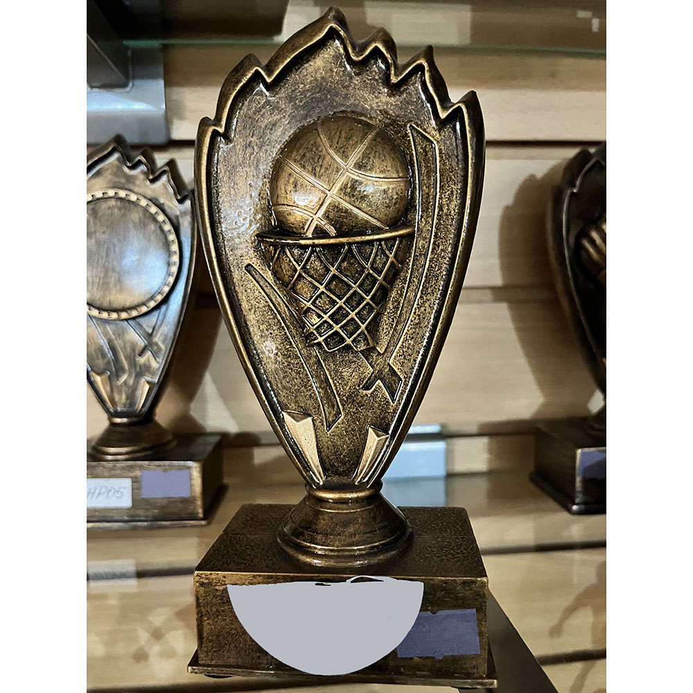 Trofeo de Resina con figura básquetbol. Presentación en caja de cartón blanco. Mod. HP-02