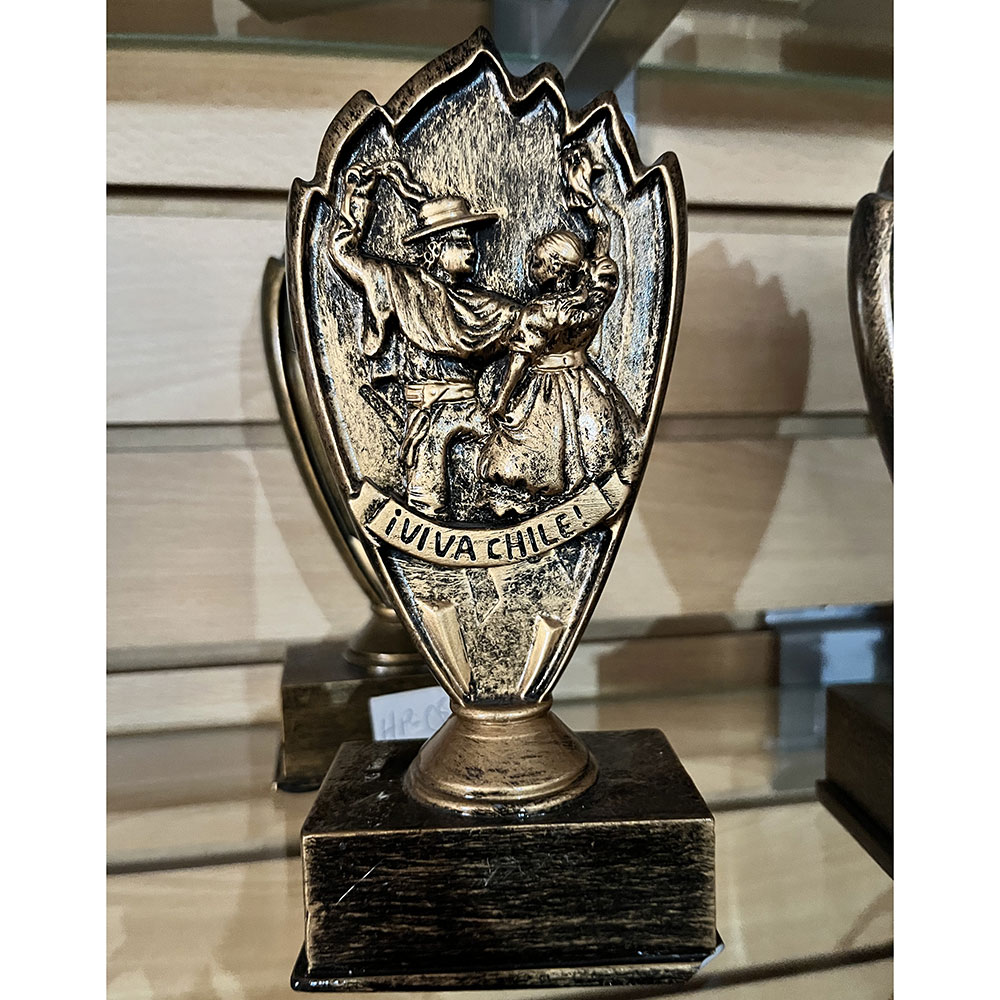 Trofeo de Resina con figura de Cueca. Presentación en caja de cartón blanco. 18 cm