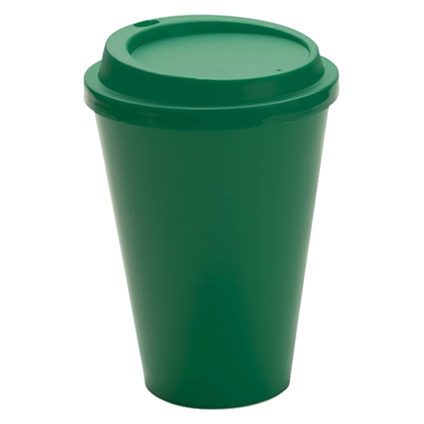 Vaso plástico blanco con tapa rosca y dosificador. Incluye goma antideslizante en base.